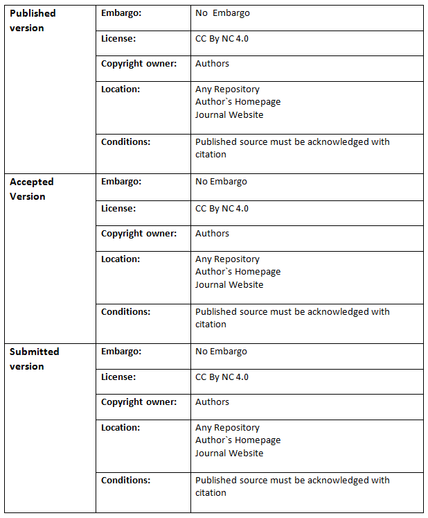 The Northwest Journal of Medical Sciences (NJMS) permits authors to submit all versions of their articles to any repository of their choice. The journal's policy outlines the open-access options available for each version of the article as follows: